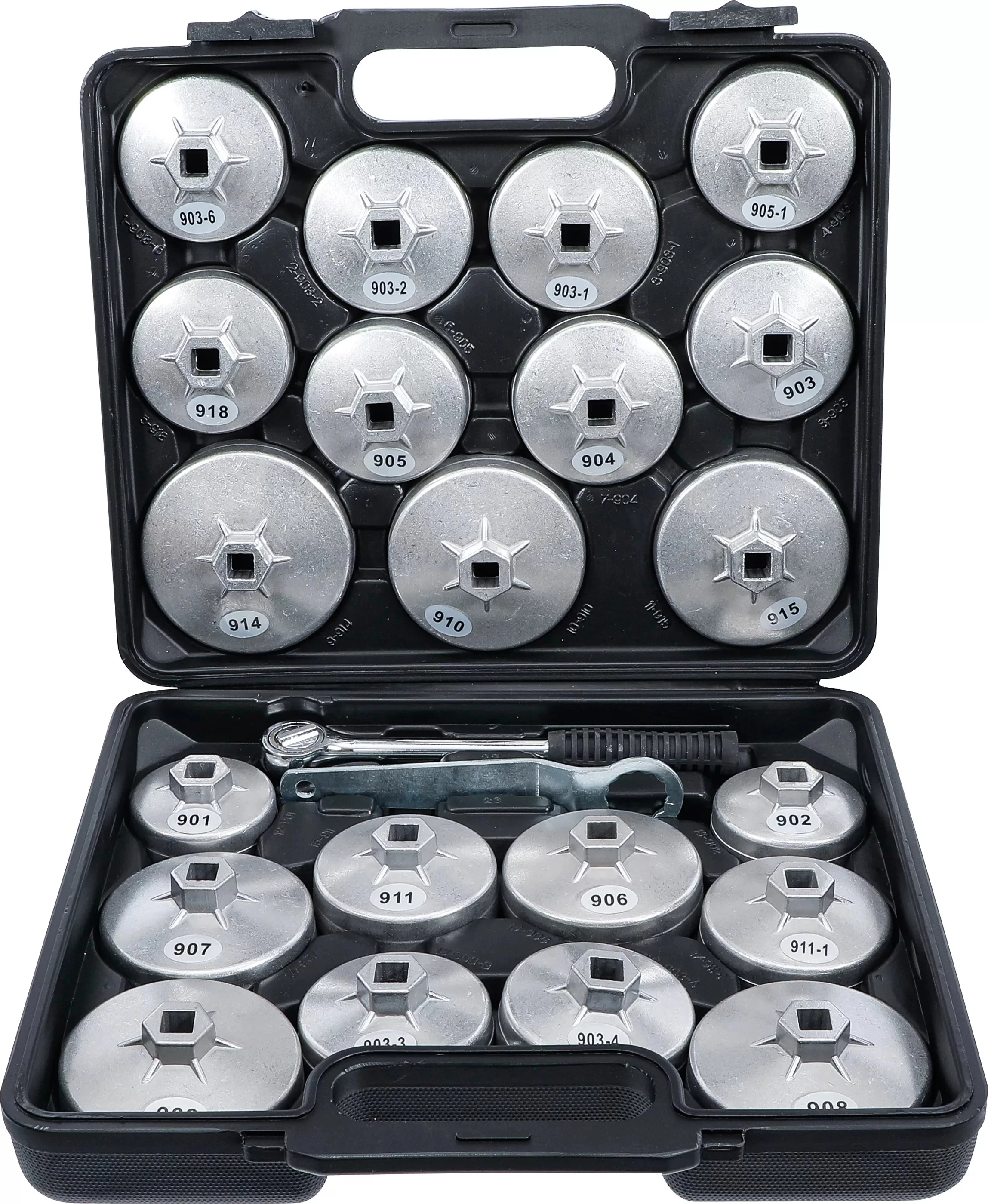 BGS Do it yourself 9-1035 olajszűrő leszedő kupak készlet, alumínium, 1/2", 23 darabos