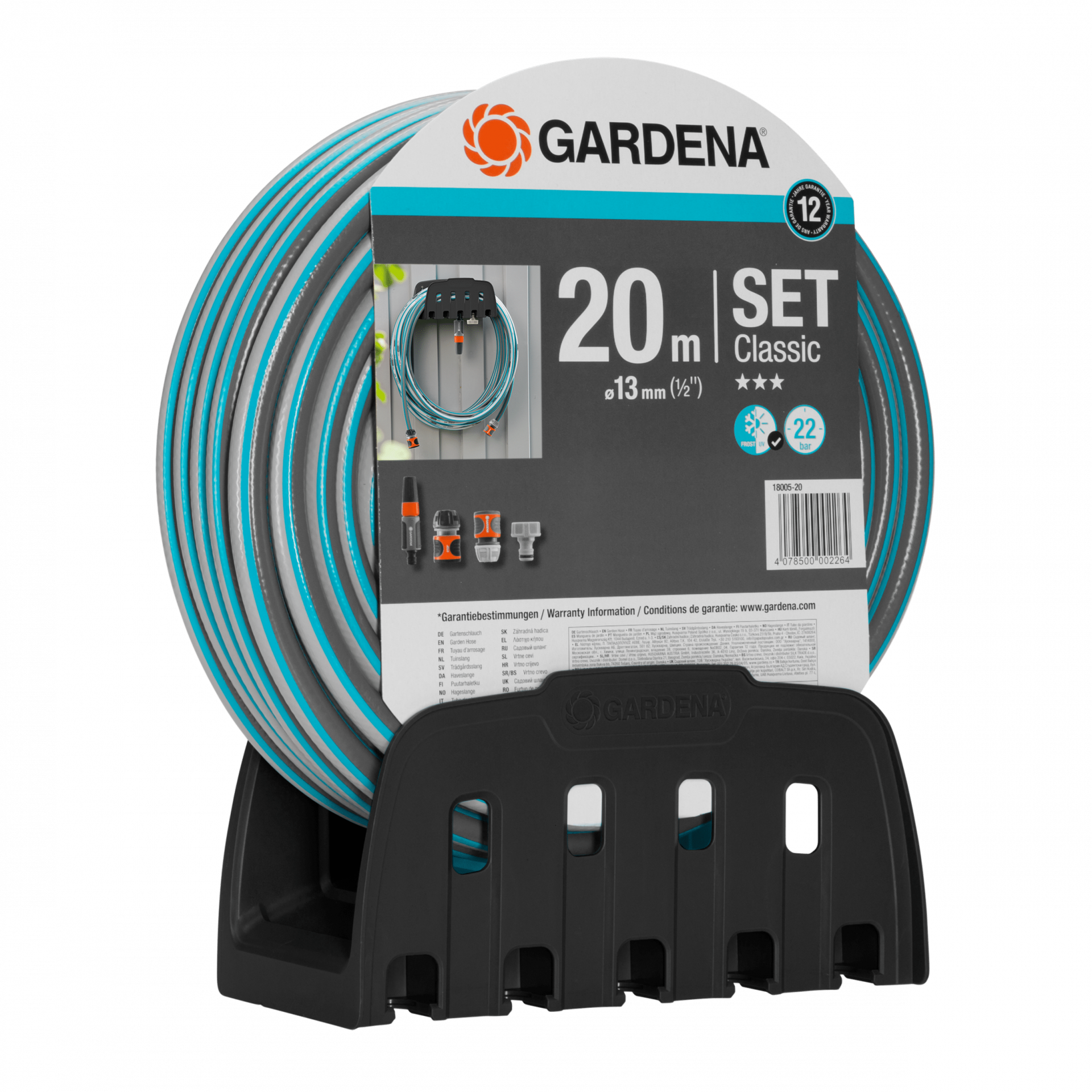 A nyomásálló (repesztőnyomása 22 bar), alaktartó tömlővel sokáig fog öntözni, mivel 12 éves garanciát adunk rá. A tároláshoz egyszerűen csévélje fel a tömlőt a fali tömlőtartóra. Mindig használatra kész. A tömlőtartó praktikus tárolási lehetőséget kínál locsolók, öntözők és esőztetők számára, melyek így szükség esetén mindig elérhetők. A tartós örömet nyújtó öntözésért.
