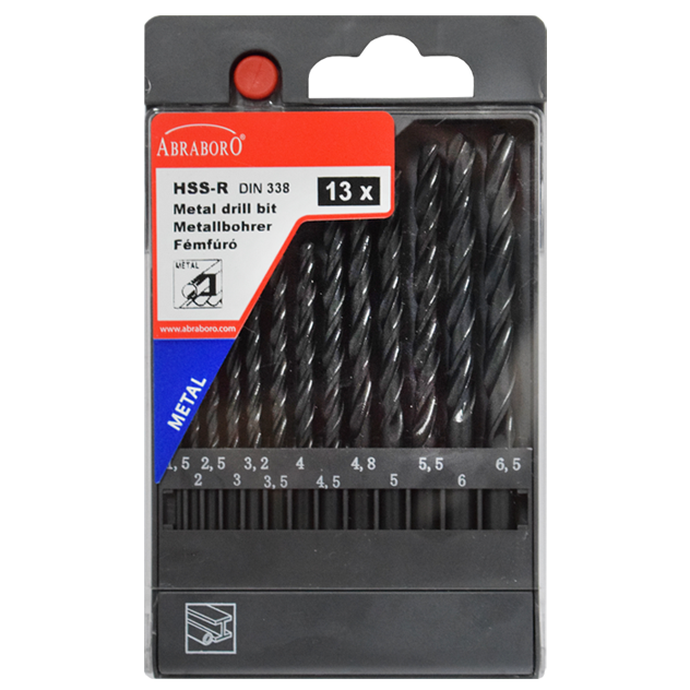 Abraboro HSS-R 13 részes fémfúró készlet, műanyag dobozban