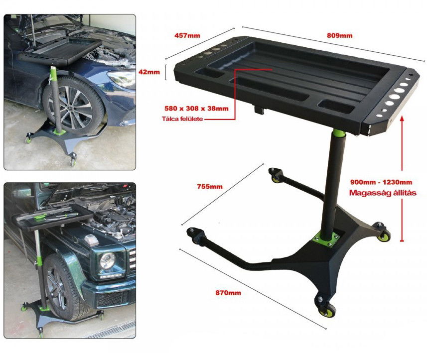 - Univerzálisan használható 3 az 1-ben szerviztálcás gurulós szerszámtároló kocsi.