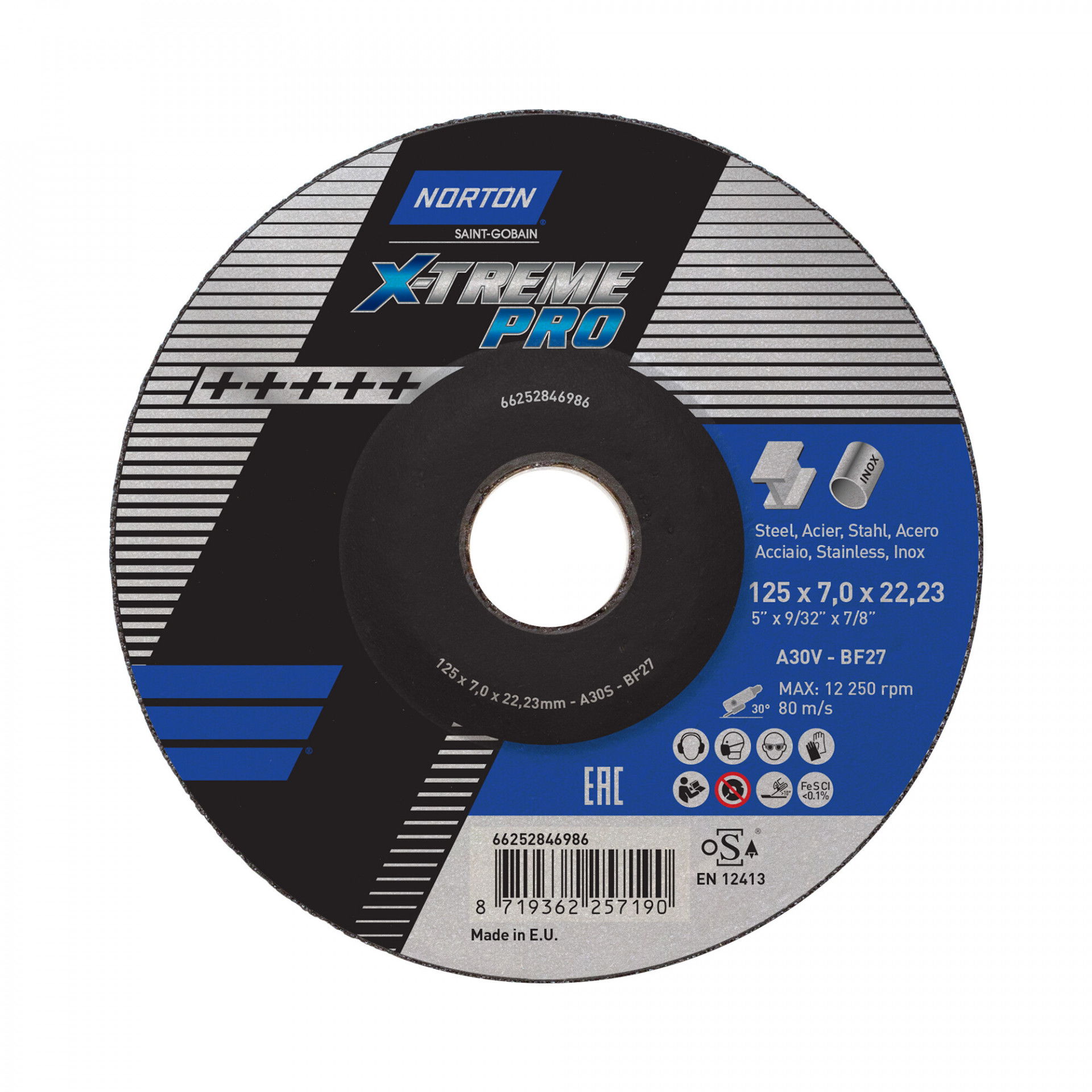 Norton X-Treme Pro fém-inox tisztítókorong 125x7,0x22,23mm, 10 db/csomag